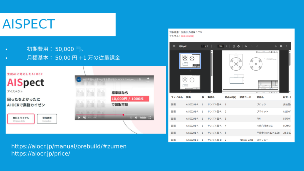 カスタマイズ版1枚あたり50,000円~5,000円 + 30円/枚1か月更新独自のAIで自在に読み取り。
