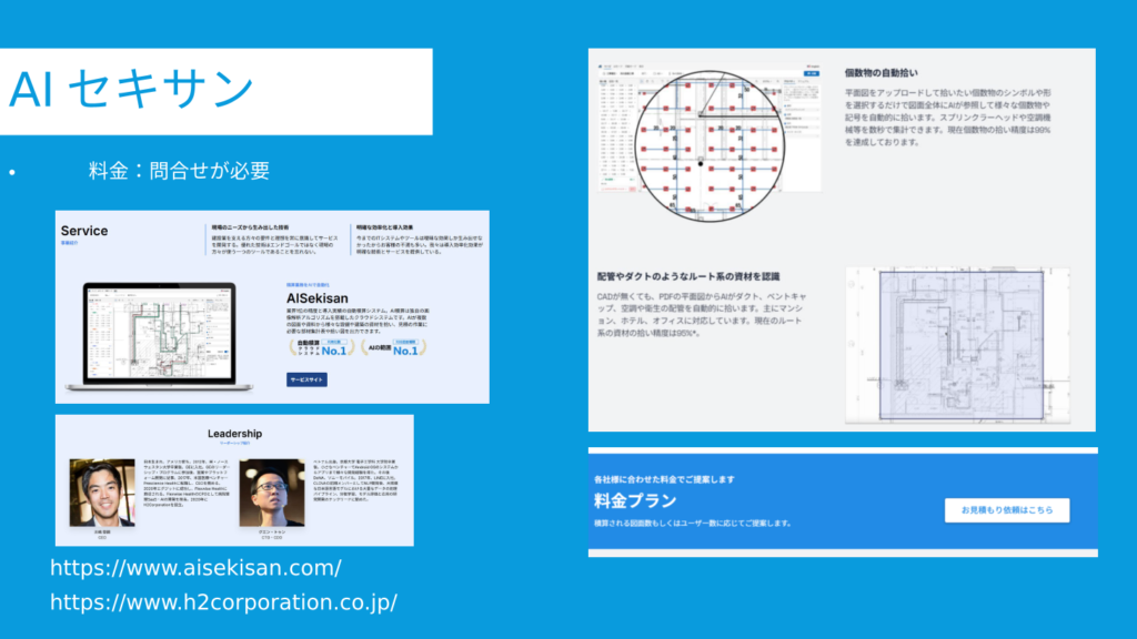 積算業務向けのAIサービスです。(価格は問い合わせ)