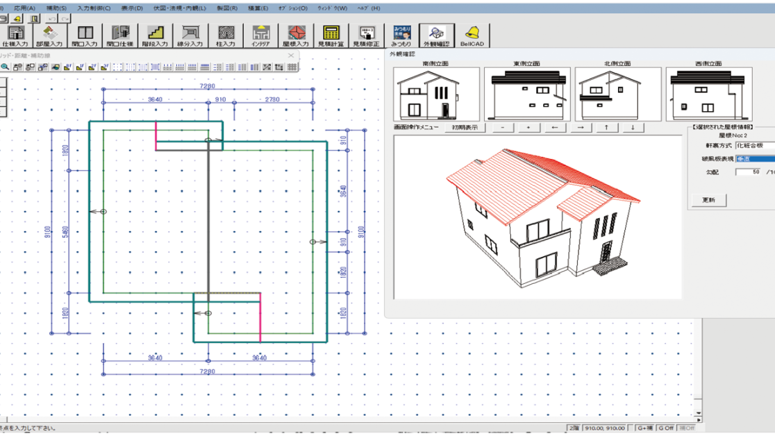 外壁・屋根の割り付け、拾い出し